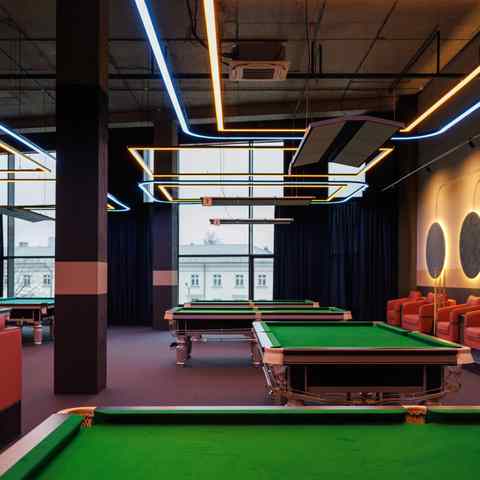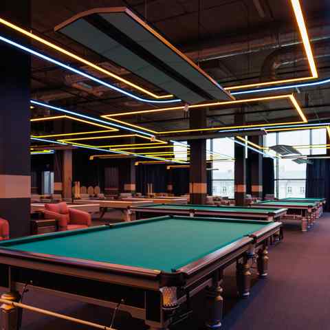 Клуб является точкой притяжения для любителей бильярда и предлагает 32 профессиональных стола: